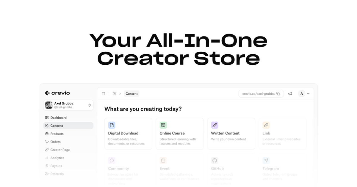 We're excited to share with you Crevio! All-in-One tool for creators to promote and monetize their content. Give it a try and let us know what you think!
